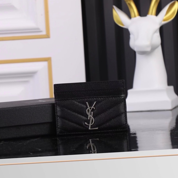 SLPカードクリップ信用クリップ金属互にバックル式YSL標準、ジャカード飾り、金の金具、凸紋ステッチ5箇『黒い銀バックル』隔層カード位隔層