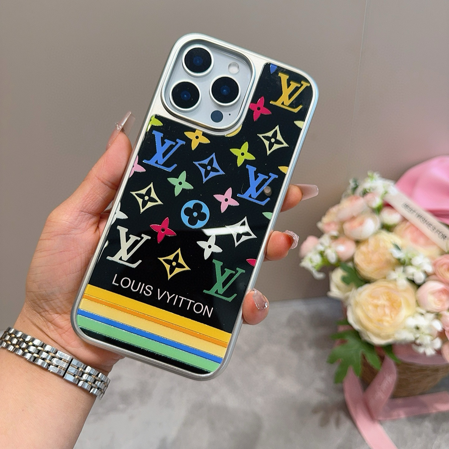 LV新作スマートフォンケース 新工法金メッキ加工ガラスケース